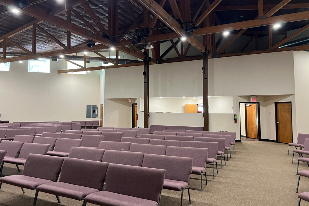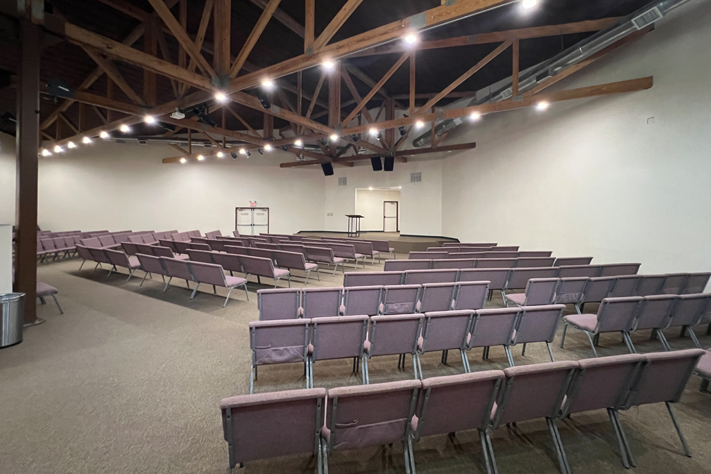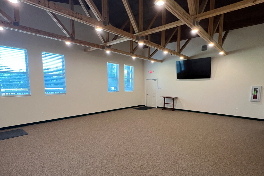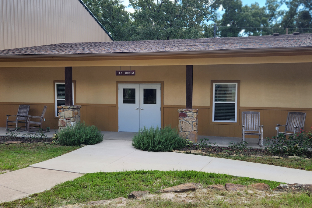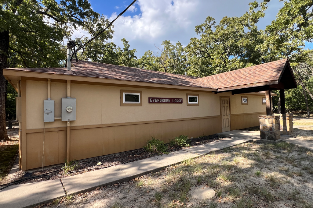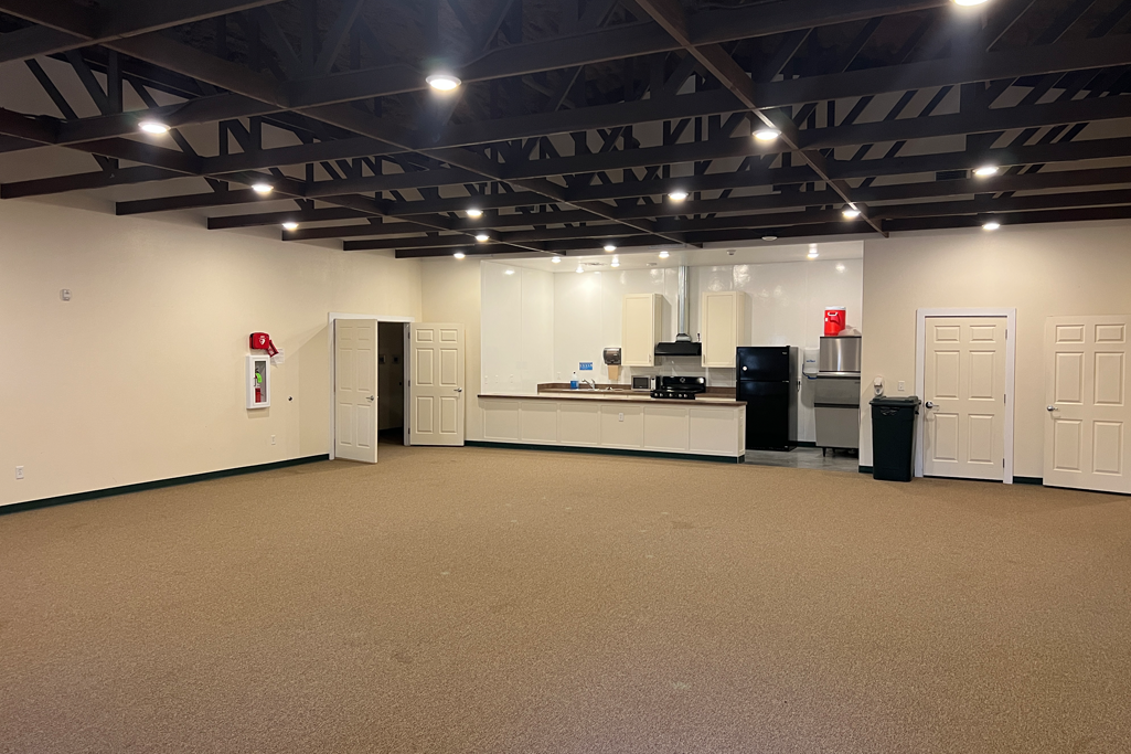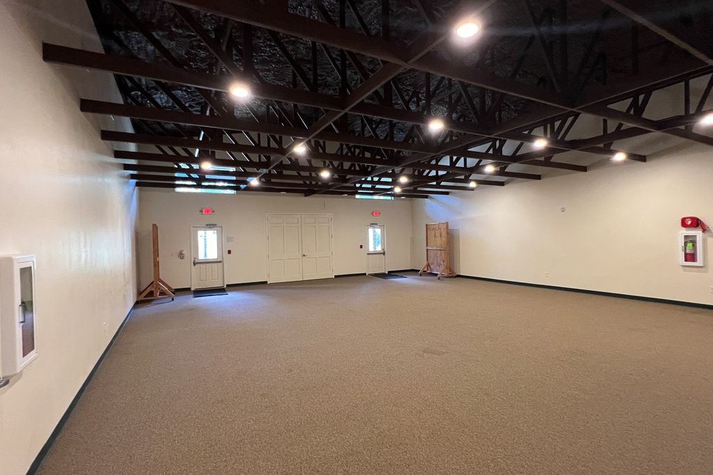 Sleeps 144 total in twin sized bunk beds. This large building has 2 wings with 6 rooms of 12 with a common meeting room in the middle. Minimum group size is 60. Click images below to enlarge.
