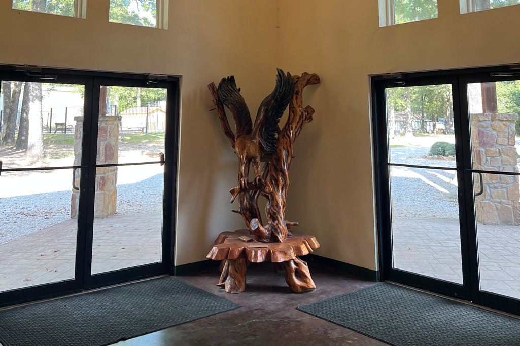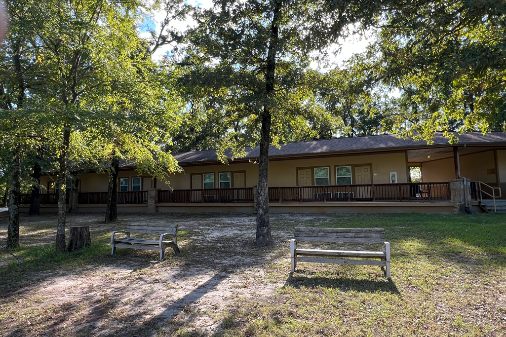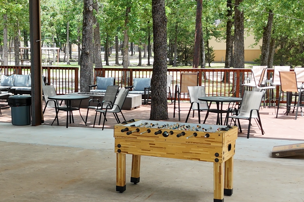 Come here to hang out, play the various table games, or sit on the deck to have small group discussions. This open air pavilion also houses our Camp Store & Cantina. Pick up a refillable water bottle, coffee mug, or a variety of clothing options here. Click images below to enlarge.