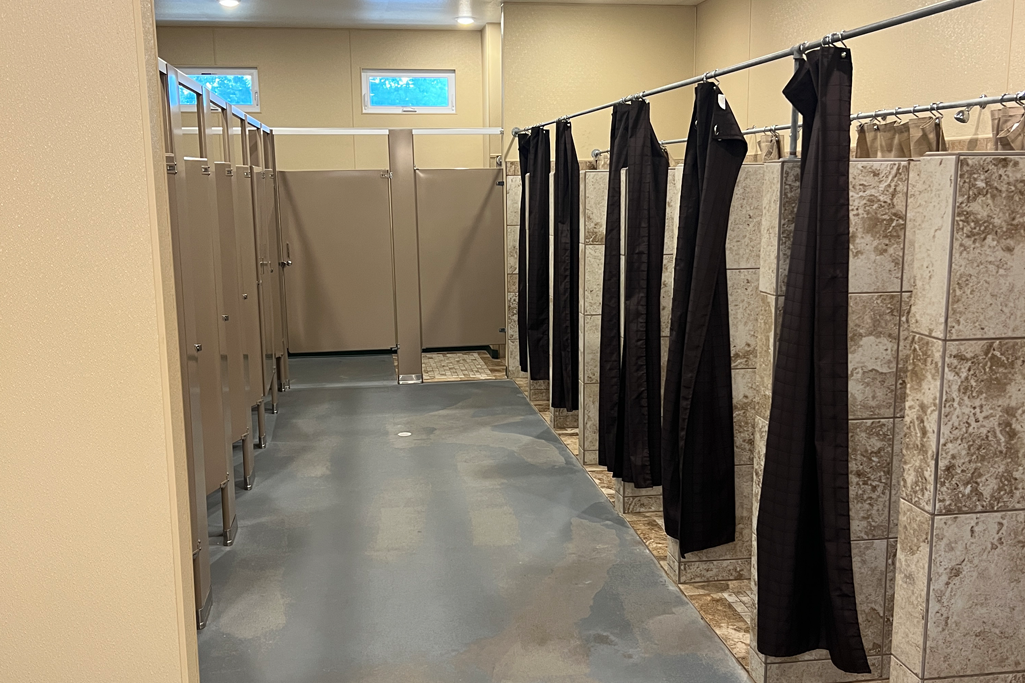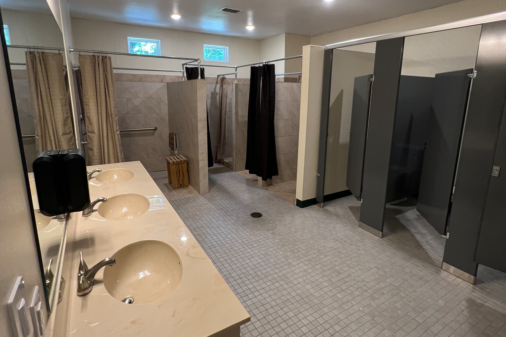 Sleeps 24 total in twin sized bunk beds. our bathrooms are tiled showers, cultured marble sinks, and clean toilets. Click images below to enlarge.